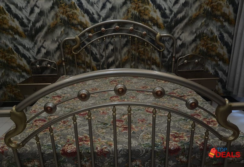 White acrylic coustion bed room set available full size bed with setty 2 side table 3 door almari almari boxes depressing best quality reasonable rate